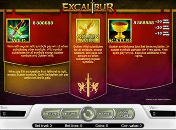 Автомат Эскалибур – азартная игра средней волатильности, поскольку выигрышные комбинации выпадают часто, но суммы выплат незначительны. Один из лучших вариантов заработать действительно крупные выплаты – участвовать в раунде фриспинов. Особенности этой бонусной игры приглашаем изучить во время тестирования видеослота без реальных вложений. Удачи!