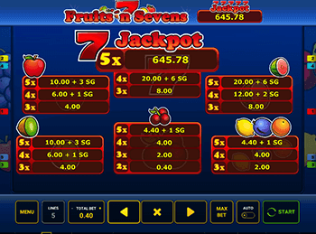 Для всех игроков, которые начинали свою деятельность еще много лет назад, символы в виде картинок с фруктами стали символом успеха и победы. Именно поэтому компания Novomatic решила вернуться к былым временам и создала новые азартные игры Fruits and Sevens. Разработчик решил дать возможность вишенкам, арбузам, апельсинам и прочим символам вновь вернуть себе славу.Игровые аппараты Вулканспособны удивлять своих пользователей новинками. Игровой автомат имеет несколько вариантов запуска игры. Можно играть бесплатно в режиме демо. Демо игра в slot позволит вам потренироваться и абсолютно не ощутить разницу между онлайн игрой. Но не стоит забывать, что такой вариант не сможет порадовать вас выигрышам.