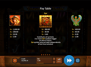 Treasures Of Tombs считается одним из лучших игровых аппаратов, запустив который, вы убедитесь в высоких шансах на победу. Азартная игра способна поразить воображение геймера завораживающей музыкой, качественной графикой и внушительными призовыми суммами. Она обладает удобным управлением, с которым легко разберется даже начинающий посетитель интернет заведений.